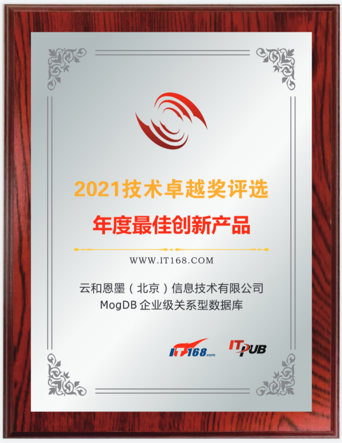 云和恩墨数据库MogDB荣获2021年度IT168最佳创新产品奖