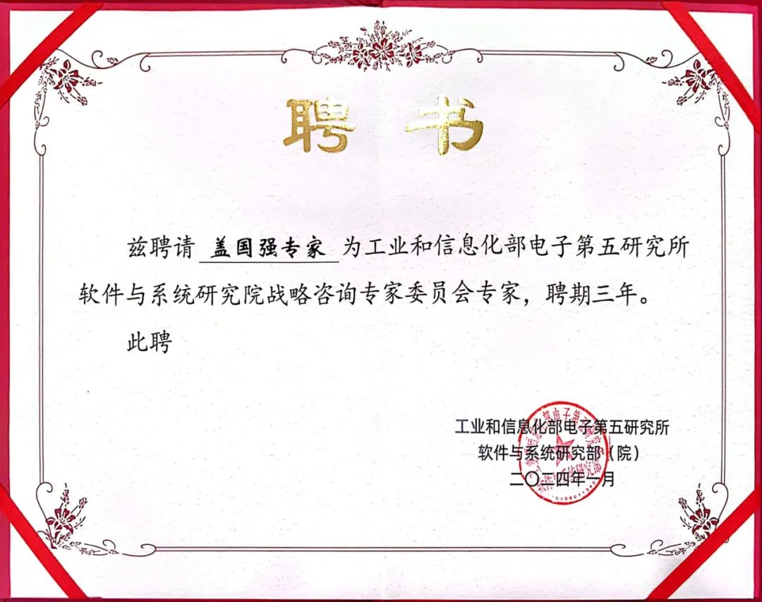 盖国强受聘成为电子五所软件与系统研究院战略咨询专家委员会专家