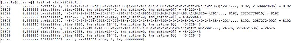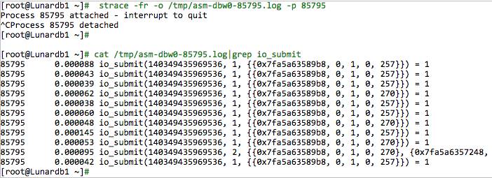 使用strace对后台进程DBWR进行跟踪,佐证了上述观点,当前文件系统的数据库没有启用AIO: