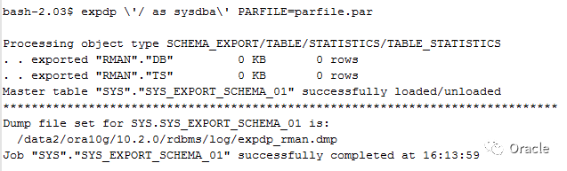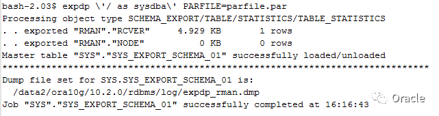 当执行expfull.sh脚本时,数据库将按照定义的参数文件进行导出,也可以通过crontab来定时导出: