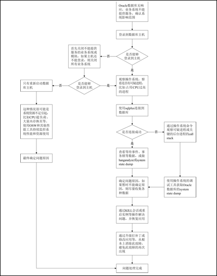 对于Oracle无响应故障的处理,我们可以按下图所示的流程进行。